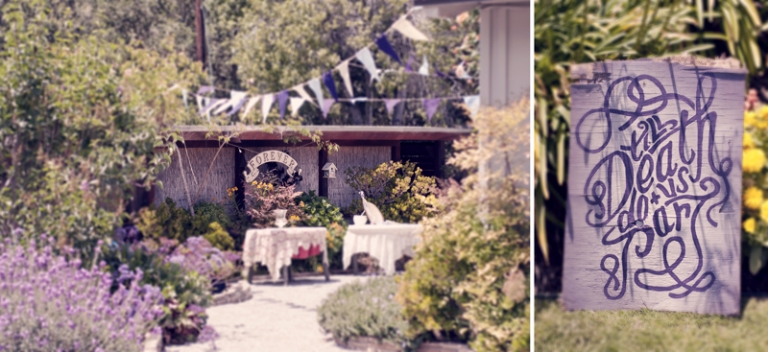 prepare yourself for some of the most artistic details, the coolest/silliest wedding cake known to man, a truly fantastically offbeat bride, some spectacular california vegetation, and just a beautiful story.