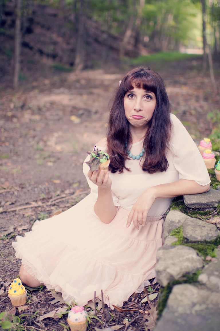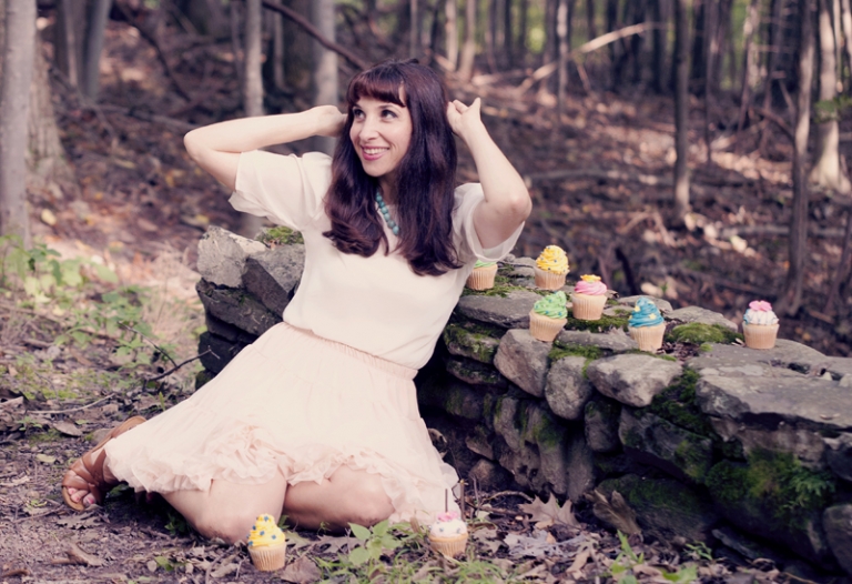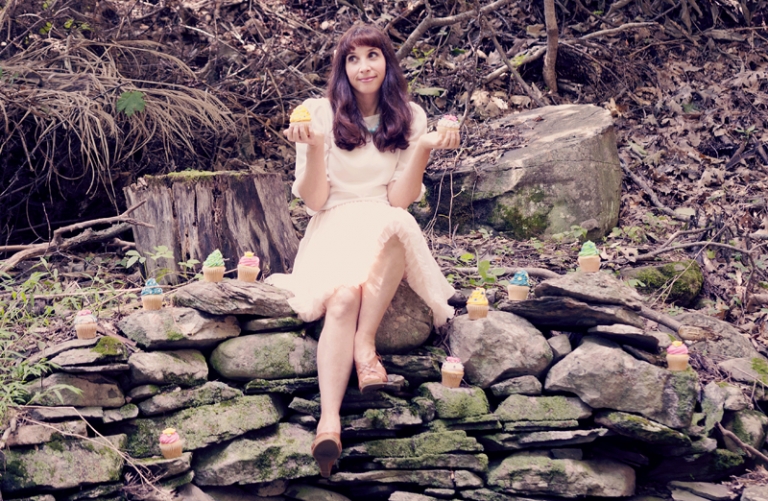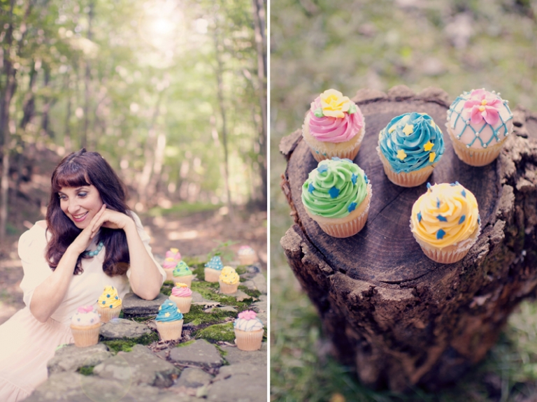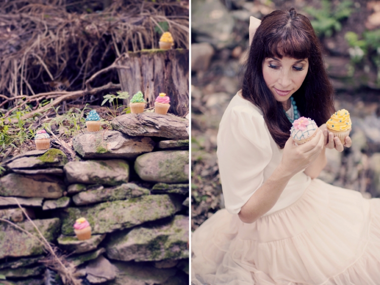 when Bari emailed me a few months ago asking me if I would come to New York to shoot the cover for her latest album, I was already intrigued. But when I read that she wanted to incorporate my vintage style with a fun cupcake theme- I was really convinced. During my time in New York last week, I traveled north a bit to the Byrdcliffe Colony, where artists reside for months at a time to help their art, and did a photo session there. The mountains and the forests were beautiful, the weather was perfect, and it all lent to a wonderful session with Bari. we had a blast scoping out locations, picking out cupcakes, getting her makeup done, and of course- doing the shoot. The entire experience felt more like vacation than work, because I got to spend some time talking to the other artist’s out there, going out to a delicious meal, and relaxing in a cabin in the woods. it was heavenly.