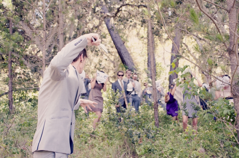 tamara and aaron had the most fun wedding party photos i’ve ever done. we all piled into cars, only minutes before the ceremony, and drove to the woods to create this funny little story. the groom created all the props, and everybody had a blast acting it all out.  this story was just too good to not create its own post. and coming soon- their ultra creative wedding!